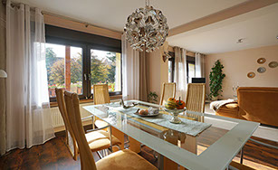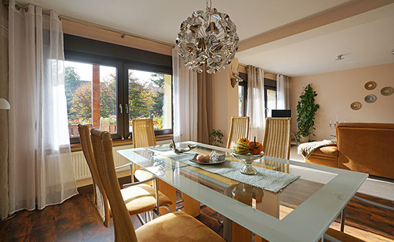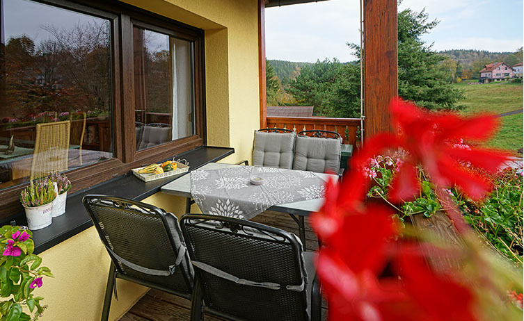 Die Ferienwohnung Parkblick ist eine behagliche und harmonisch eingerichtete Ferienwohnung für 2 bis 6 Personen und es kann eine zusätzliche Aufbettung für Kleinkinder bereitgestellt werden. Die Wohnung verfügt über einen schönen, großem Balkon. In der komplett eingerichteten Küche macht Kochen Spaß. Zwischen Küche und Essbereich im Wohnzimmer gibt es eine Durchreiche. Das geräumige Wohnzimmer ist in einen Essbereich und einen gemütlichen Wohnbereich gegliedert. Zwei Schlafzimmer, ein Badezimmer mit Wanne, Dusche, WC, sowie ein weiteres separates WC komplettieren die Räumlichkeiten. In der Wohnung finden Sie in den Schränken reichlich Stauraum für Ihre Kleidung. WLAN Internetzugang (auf Anfrage) und SAT-TV. Die Unterkunft befindet sich in ruhiger Lage, direkt an der Kurzone und zur Rückseite am Waldrand mit Panoramablick auf eine malerische Felswand. (Nichtraucher-Ferienwohnung, auf dem Balkon ist Rauchen gestattet)
